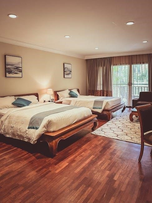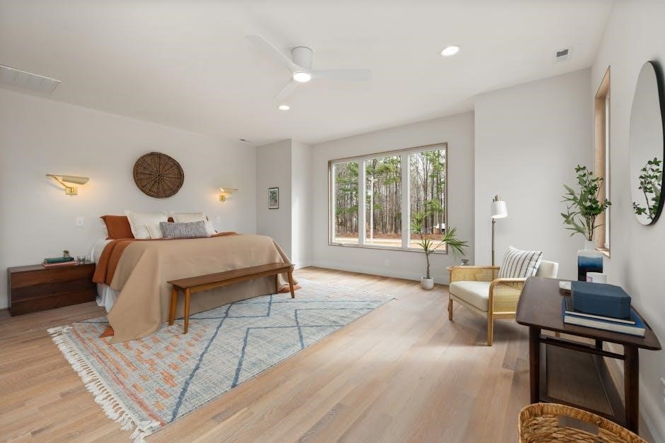 Prioritizing open space enhances the room’s overall flow and makes it feel more inviting․ Remember, the rug should anchor the beds and define the sleeping area, not consume the entire room․ Thoughtful consideration of floor space contributes significantly to a well-designed and comfortable bedroom․