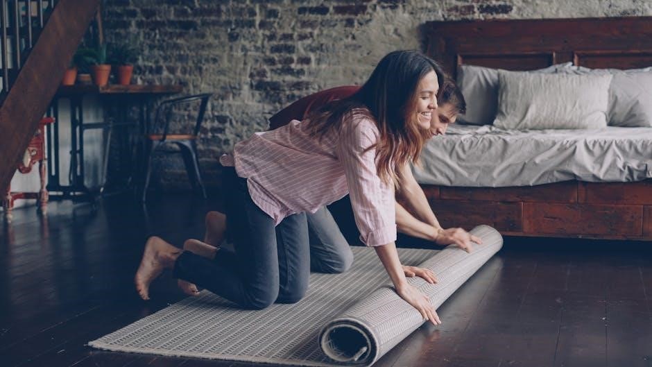 Walk around the taped area, simulating the feeling of the rug underfoot․ Consider how the layout impacts traffic flow and overall room proportions․ Pay attention to the recommended 18-24 inch extension beyond the sides and foot of the beds for balance and comfort․ This hands-on approach minimizes the risk of selecting a rug that is too small or overwhelms the space, ensuring a harmonious and well-proportioned bedroom design․